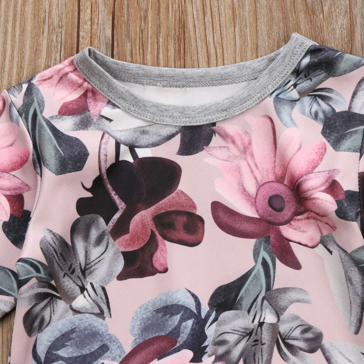 2Pcs Toddler Kids Newborn Baby Girls Clothes Floral Long Sleeve T shirt Tops Floral Pants Outfits S