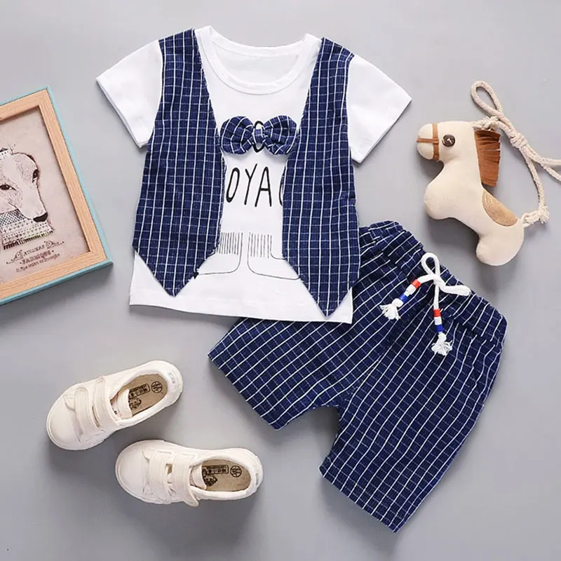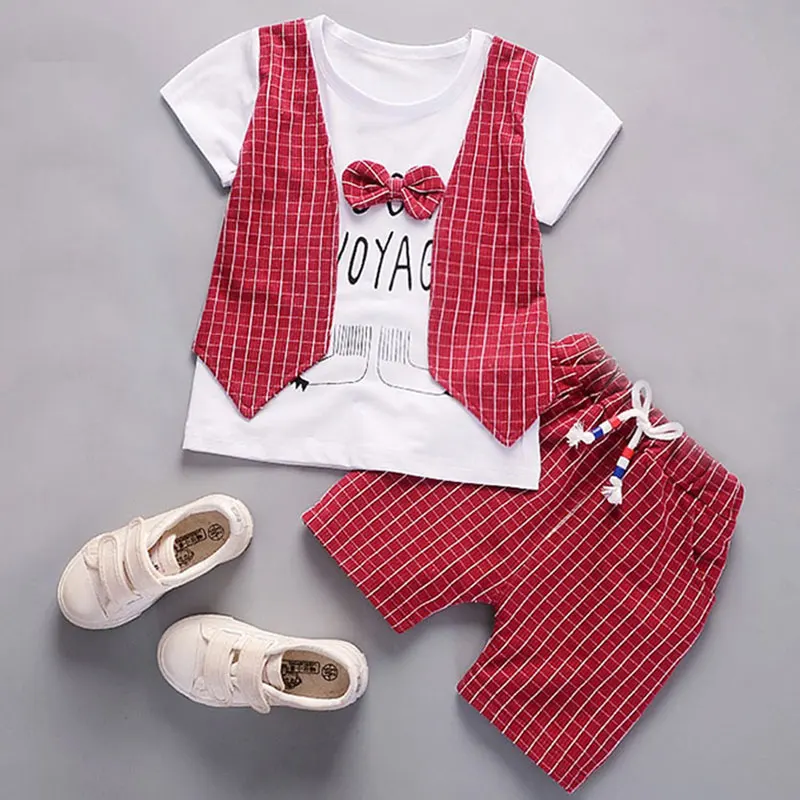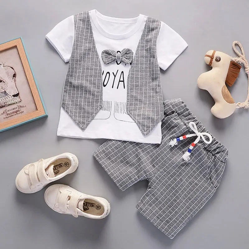 boys vest pant suit fashion casual gentleman clothing faked two pieces T shirt infant set clothes p