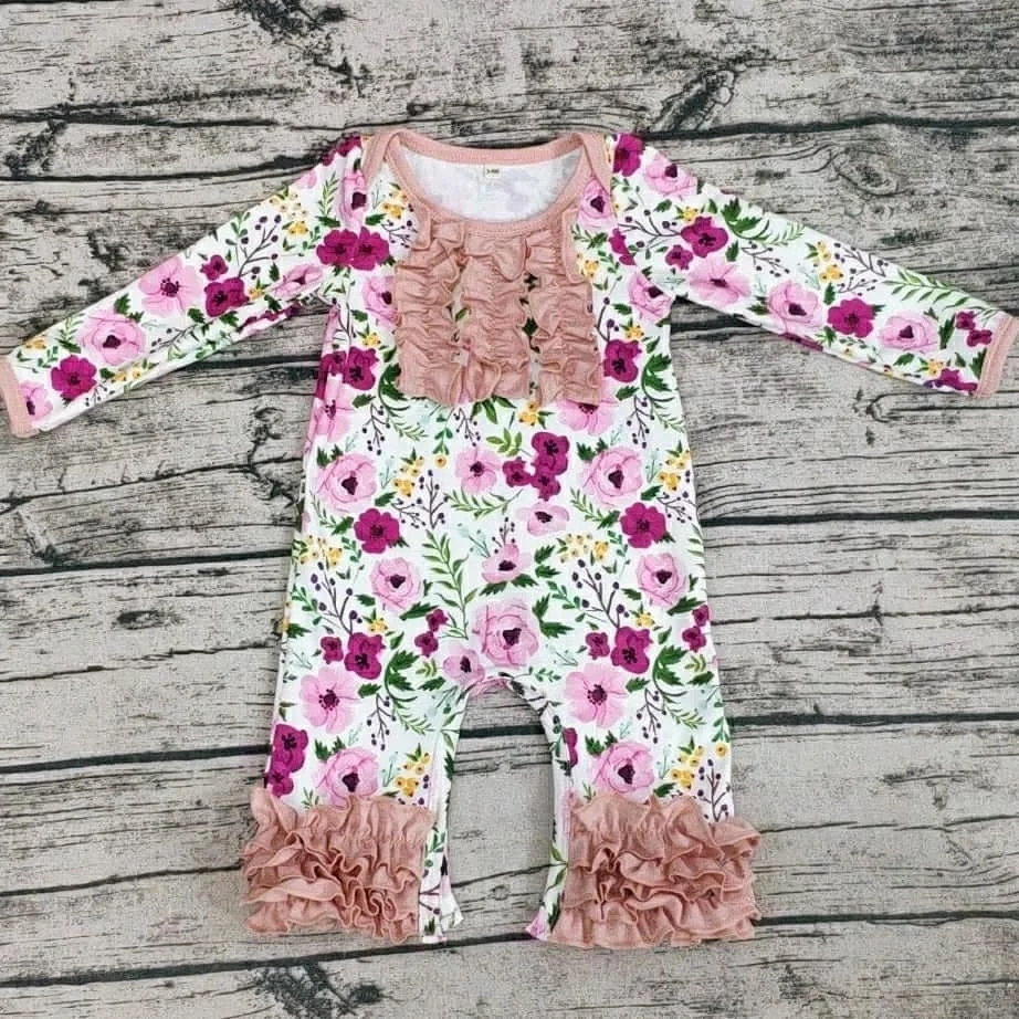 New Arrival Newborn Baby Girls Floral Print Romper Long Sleeve Cute Icing Boutique Romper Clothing