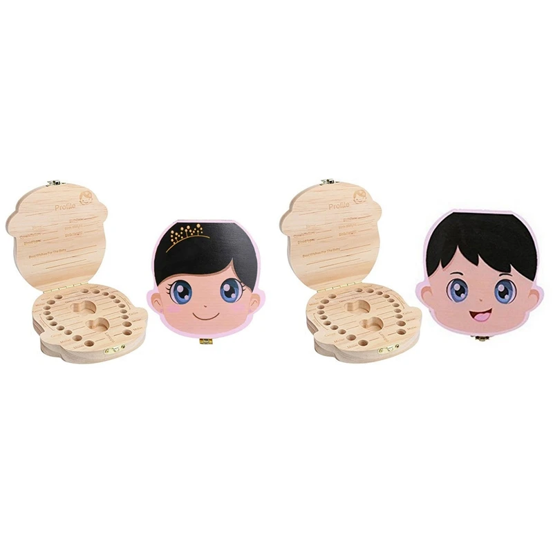 2 Pcs New Kids Tooth Box Organizer for Baby Save Milk Teeth Wood Storage Box Boy & Girl