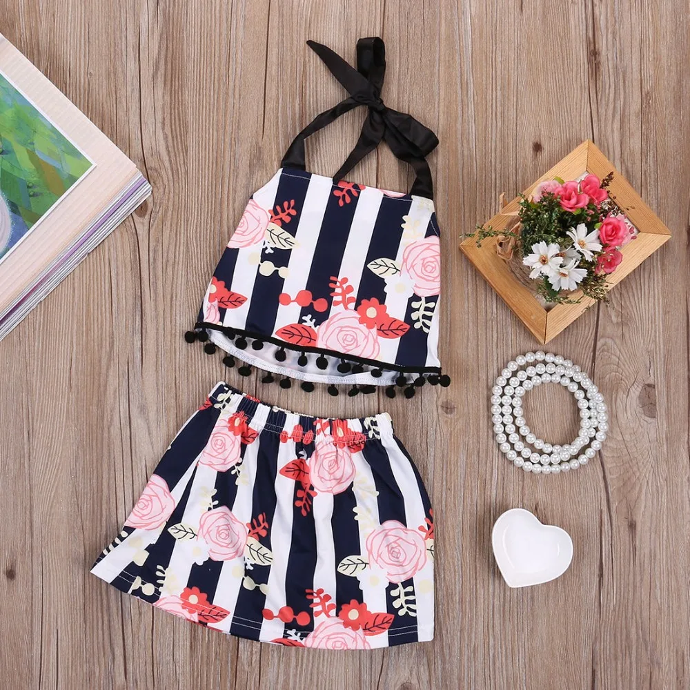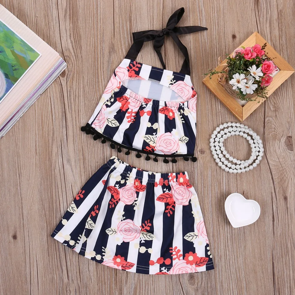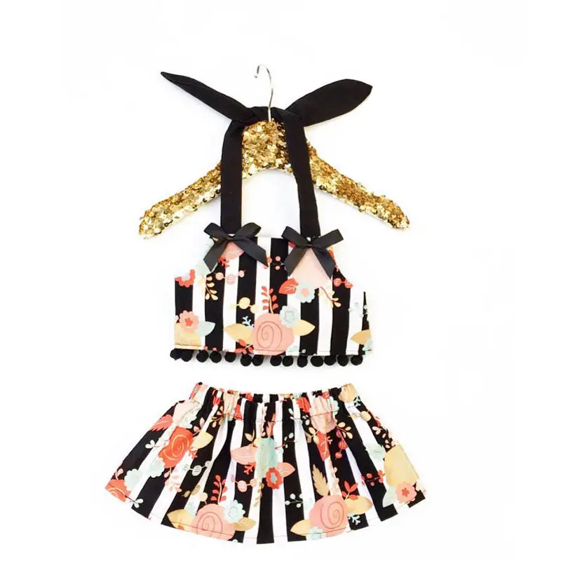 Clearance Promotion kid Baby Girl Clothes Set Floral Sling Dress Black And White Stripes 2PCS Bebe